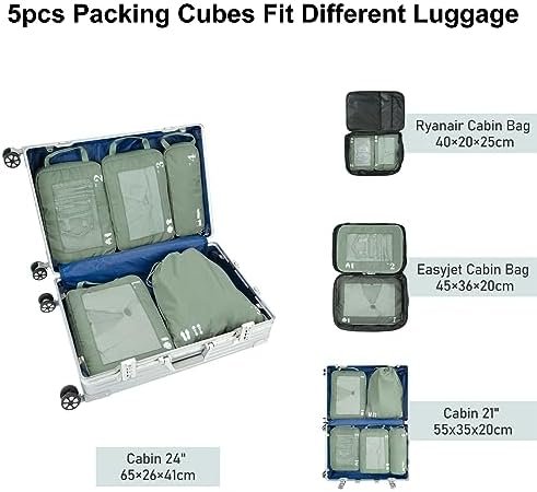 Keep your items organised: ECOHUB travel organiser set is suitable for different requirements and have ID tag for easy differentiation. No.1 Large bag is suitable for your coat. No.2 and No.3 pockets are medium, you can put your tops and trousers in them. N0.4 underwear bag to separate your personal items from other garments and keep your privacy. The No.5 drawstring bag allows you to keep your shoes separate.