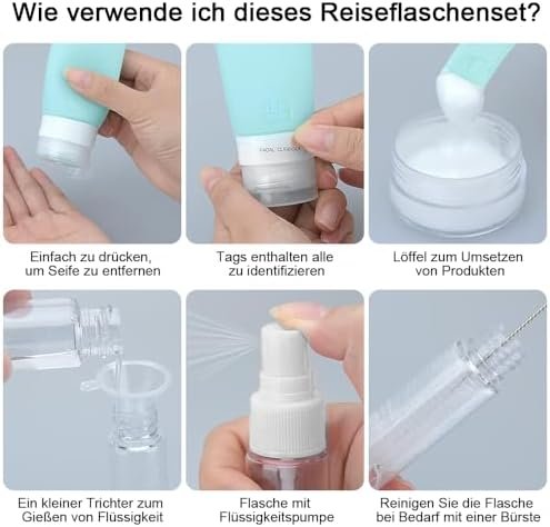 Practical travel accessories: with the included accessories such as the funnel, cleaning brush and labels, the set offers everything you need for your trip to transport and organise your liquids easily and neatly