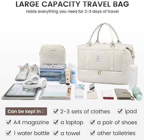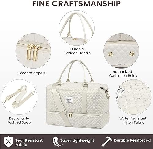 ✂️Thoughtful details: the travel bag has a sturdy base and a waterproof bottom buckle to protect it from wet surfaces. The travel bag features comfortable large handle and a removable shoulder strap that can be carried in your hand or on the shoulder, as well as a luggage strap that can be attached to suitcase trolley so you can travel practically.