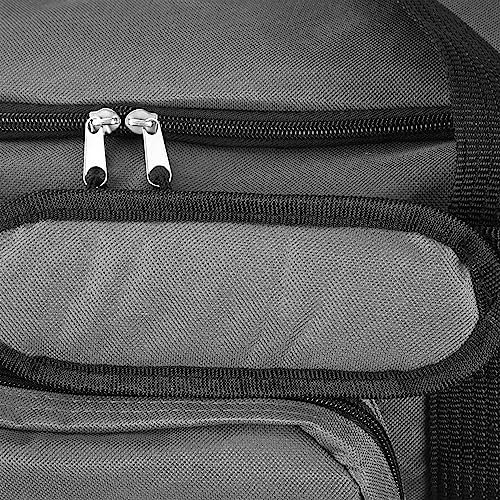 Die Tasche wird an zwei stabilen Handgriffen getragen, die mit Klettverschluss miteinander verbunden werden. Wer das Gewicht lieber auf der Schulter trägt, kann den gepolsterten und verstellbaren Schultergurt benutzen, der mit zwei robusten Karabinern in Position gehalten wird.