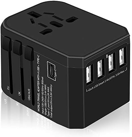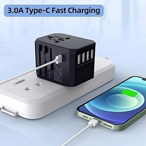Intelligent fast charging: 4 USB ports + type C + AC socket, travel plug for simultaneous charging of 6 devices at high speed, smart chip for identification, automatic display of current and voltage ensures safe and effective charging. Total output of 5.0 A, max. 2.4A USB is compatible for smartphone, 3.0A Type-C is compatible for Macbook, laptop and other devices