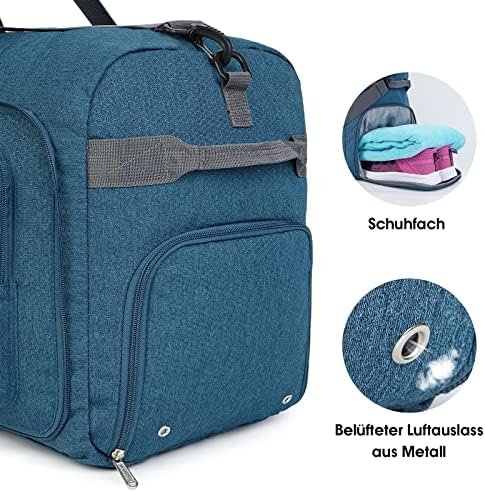 LARGE CAPACITY AND FOLDABLE: The WANDF weekender bag measures 65 x 25.5 x 33 cm and meets most requirements for business travel. The spacious 65 litre room easily fits for 3-5 days with the most important things of daily needs. Folded size: 29 x 26.7 x 7.6 cm, which can be used as a just-in-case bag in your suitcase.